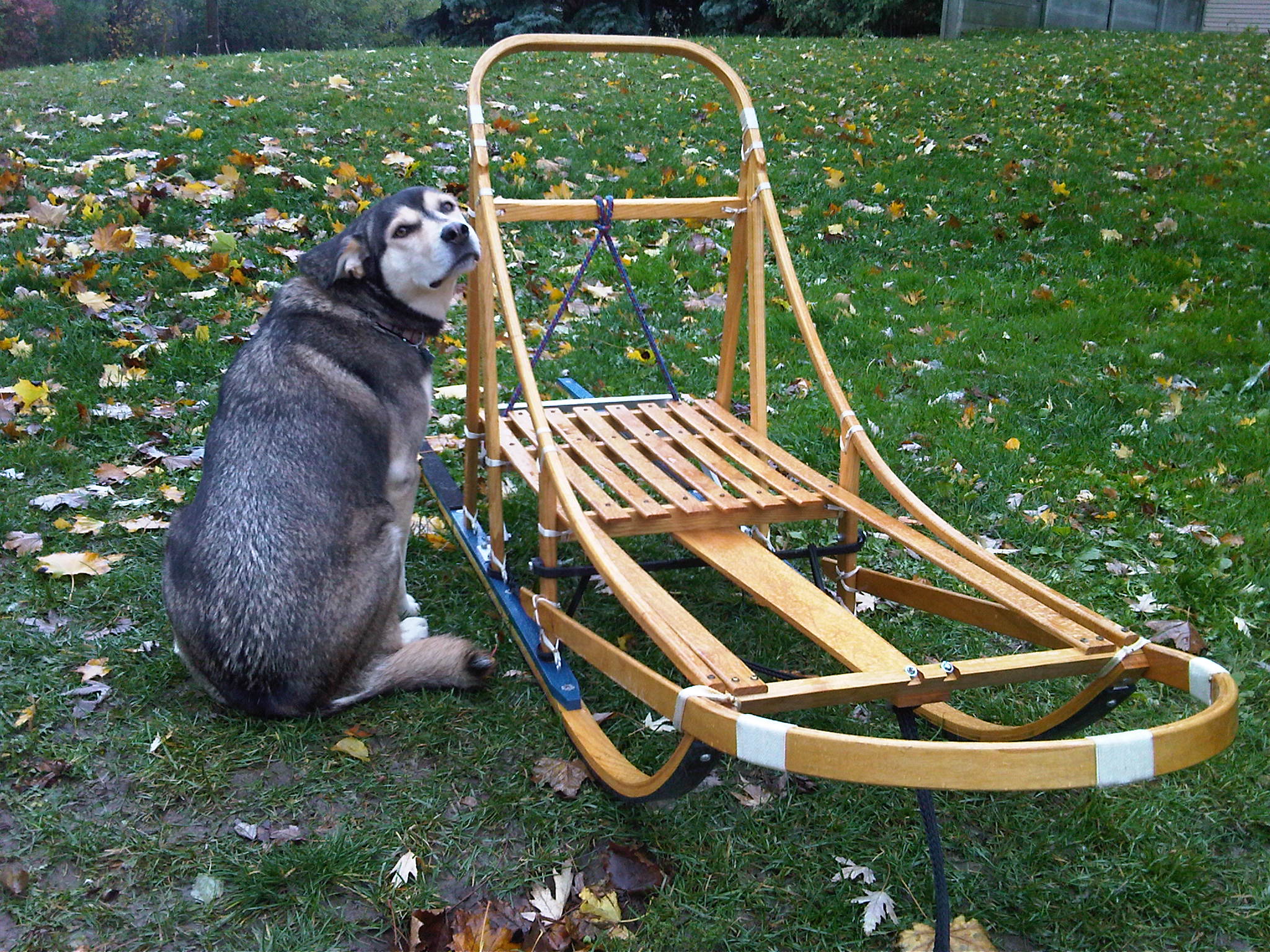 I've got 1 malamute x siberian amd 1 siberian + the husky/shepperd in the pic the 3 of them are good on a gangline, and we have been training with the mountain bike for the last year with great success! I've been told the sled offers reduced weight and less friction = faster/longer. Just sucks on mud and rocks! I am working on getting an action cam to make some vids, It must be tough though as you can imagine learning has its bumps, knocks, and horrible wipouts !