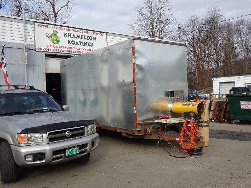 just to catch pppl up...sorry for not having been around. been so so swamped with work and stuff...moved shop finally...right on main artery in town... 2400sq feet shop space... and over this last winter...with my welding skills and creativity i built myself a 16 foot oven on car hauler. therefore it is on wheels and bumper pull for easy moving it around. or if i need to move again in future, just go get a license plate for it....its nothing more than an insulated box w/ burner on trailer ...