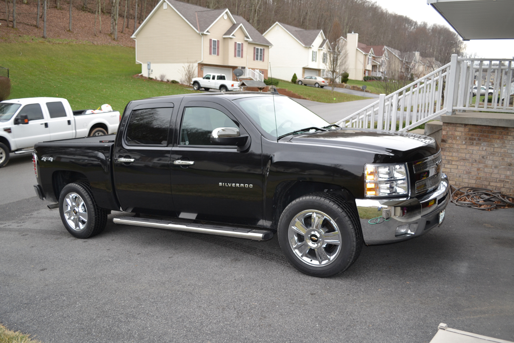 My Christmas present.....A set of take off 20" wheels and tires off a Silverado LTZ. Beats the hell out of the drab 17's that came with the truck when I got it.