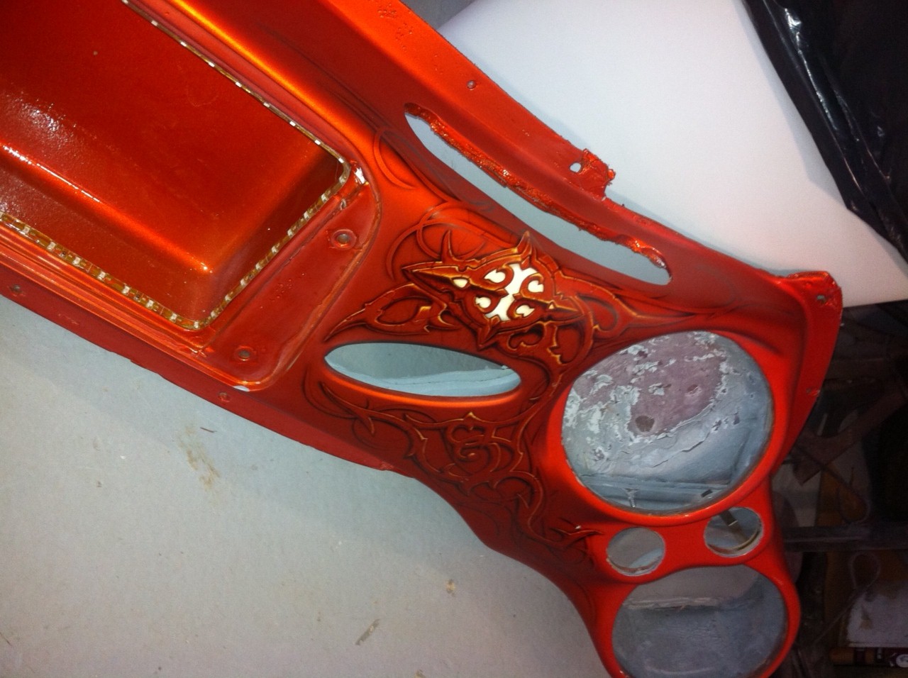 honestly not sure about the airbrushing, everything looks so clean and modern and then that art looks old/cracked?