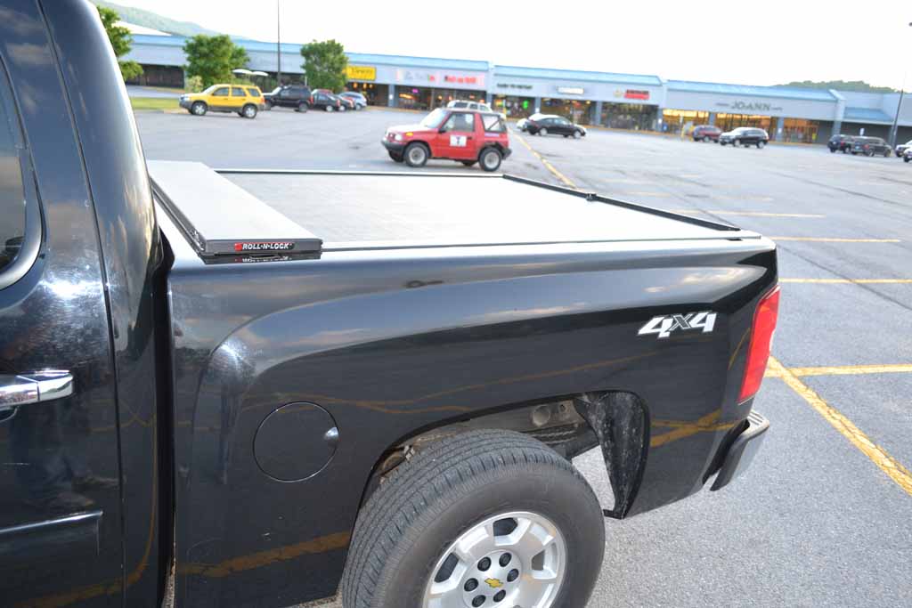 Friday I got up at the crack of dawn and went down there to give them as much time as I could to do the kicks without her finding out (remember it's a good three hour drive down there). I get down there, and they wheel the Roll-N-Lock into the bay, open the box, and come to find out it was for a Tundra. The manufacturer had the box marked wrong. Derp. Benny immediately calls Chris to tell him, and then Benny hands me the phone. Chris apologized and said he would be at the shop in a few minutes, I could leave my truck there, and he'd let me use his vehicle over the weekend. They'd get the right Roll-N-Lock in on Monday, install it, and meet me half way between where I live and Johnson City, at whatever time worked for me on Monday. Dude didn't even have time to think about it, that was apparently his first idea for a solution. These guys are top notch.