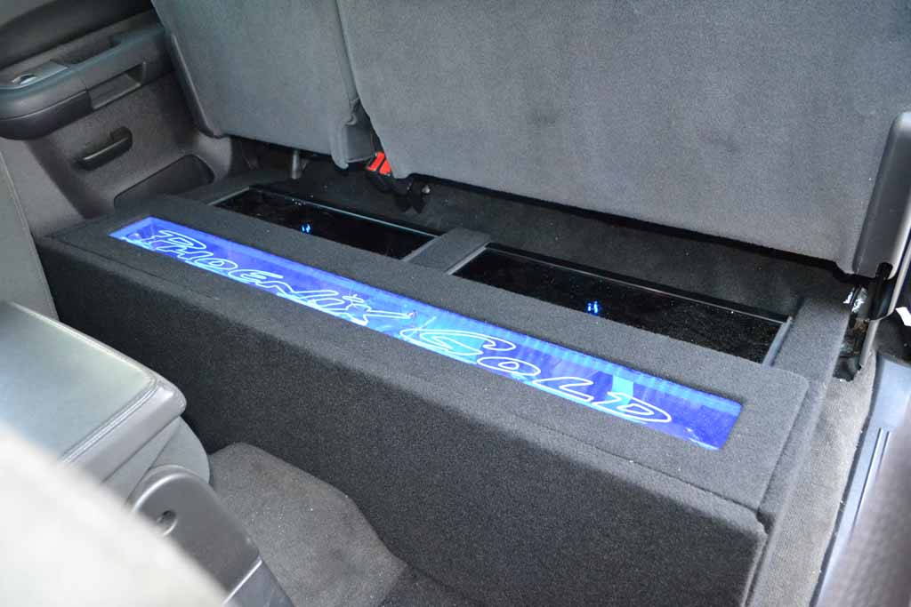I was giving a guy a ride today, and he knew I had a system, but before he got in, he assumed I took the back seat out. I was like "I have a back seat, look", and opened the back doors. Since they hid the wires this weekend, you can barely tell it's there by opening the doors if you aren't looking for it. I raised the seat and turned the lights on and he was like "holy shit!". lol