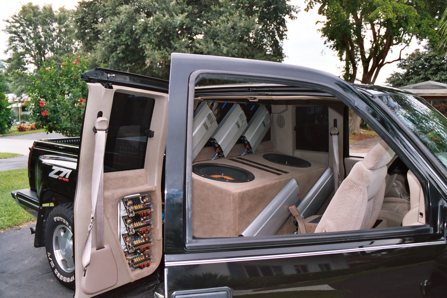 The customer I did the truck for has a suburban for the kids to ride in. That was his SQ toy and yes I said SQ. It took 3rd in its class, the only 2 that beat us were OWNED by Rockford Fosgate.... but with a parking brake relocate, the skys the limit on the kicks. Traditionally trucks are more difficult to do SQ with due to path length. so the kicks are key to sonic goodness! Did the Ti9's in the doors on this truck too. Was VERY pleased with the results.