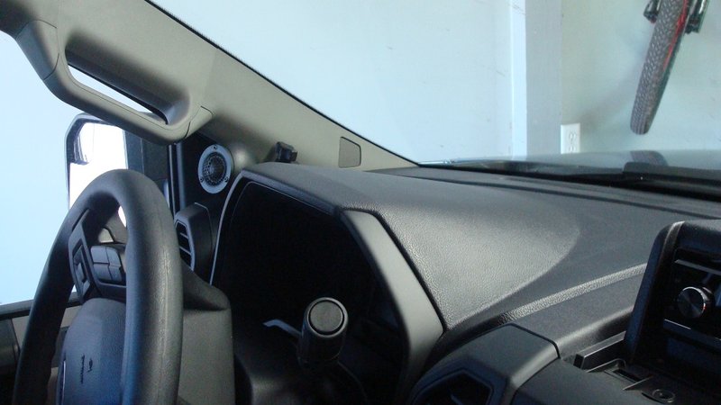 I FINALLY got to installing my midrange and tweeters. The tweeter mounts turned out better than I imagined. I am able to adjust them on the fly and play around with different angles to see what sounds best to me. The midranges are probably going to bring some criticism as they go against everything you read on driver placement, but it was the only place I could find that didn't require extensive fiberglass work or look obtrusive. With the doors closed, you can barely even tell they are there. After doing some research, it seems that people have had good luck with placing mids in the dash near the windshield as long as the driver is as close as possible to the surface it is reflecting off of. I thought I'd give it a try and see what happens.