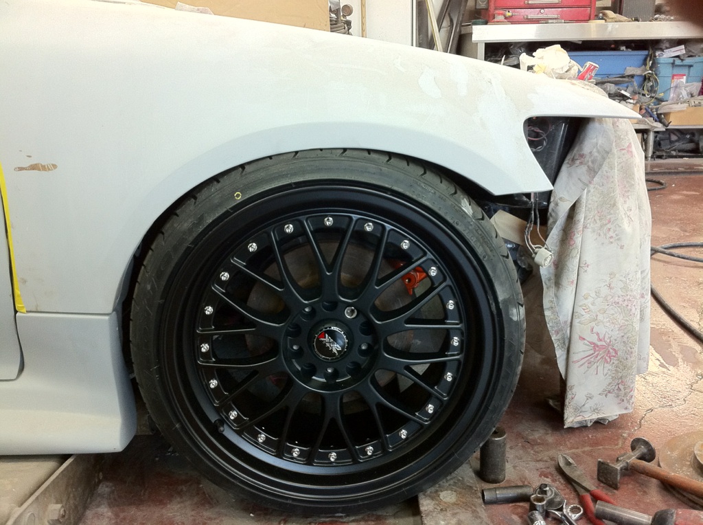 That paint is looking awesome! I like the new wheels better than the other ones that didn't fit, the silver bolts just didn't look right.