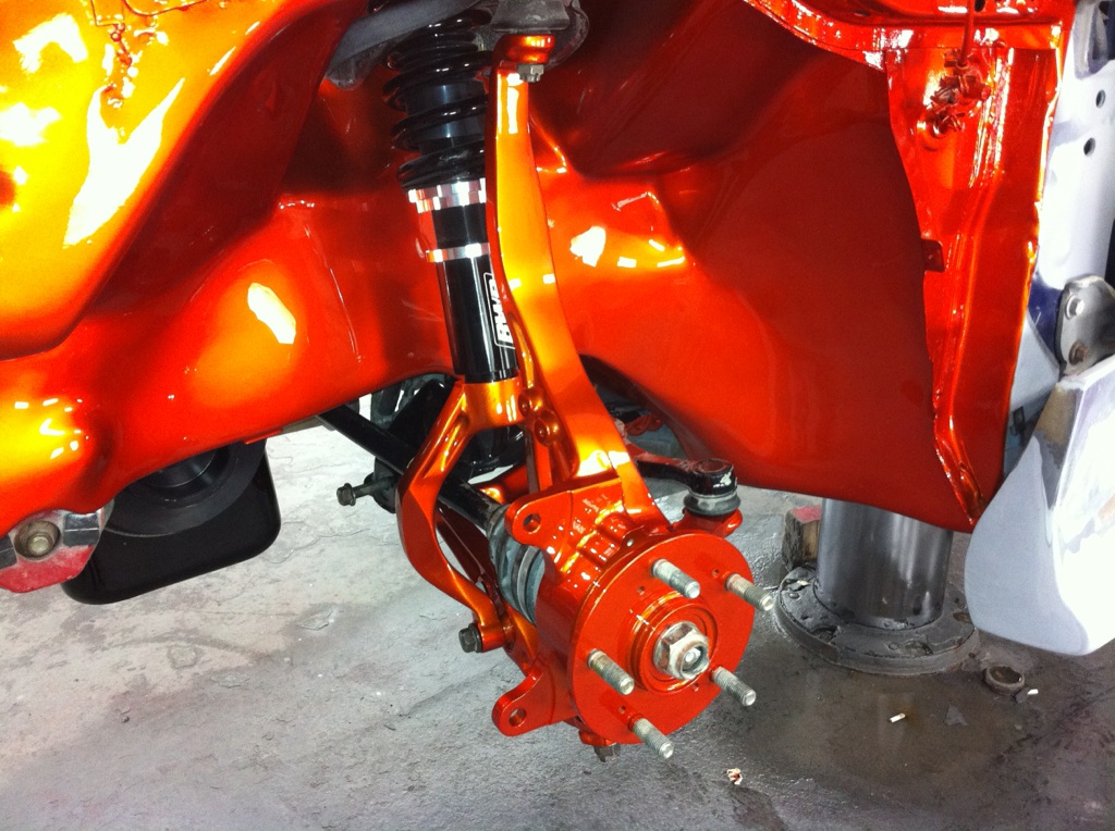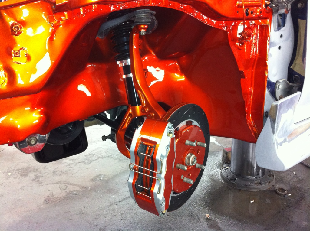 Not exactly audio but wanted to share anyway...the bodyshop just finish shaving and painting the inner fender + the suspension and brakes...next the car!!!