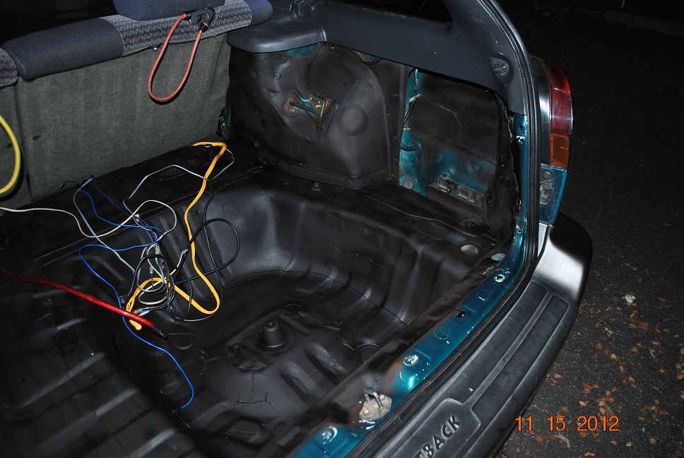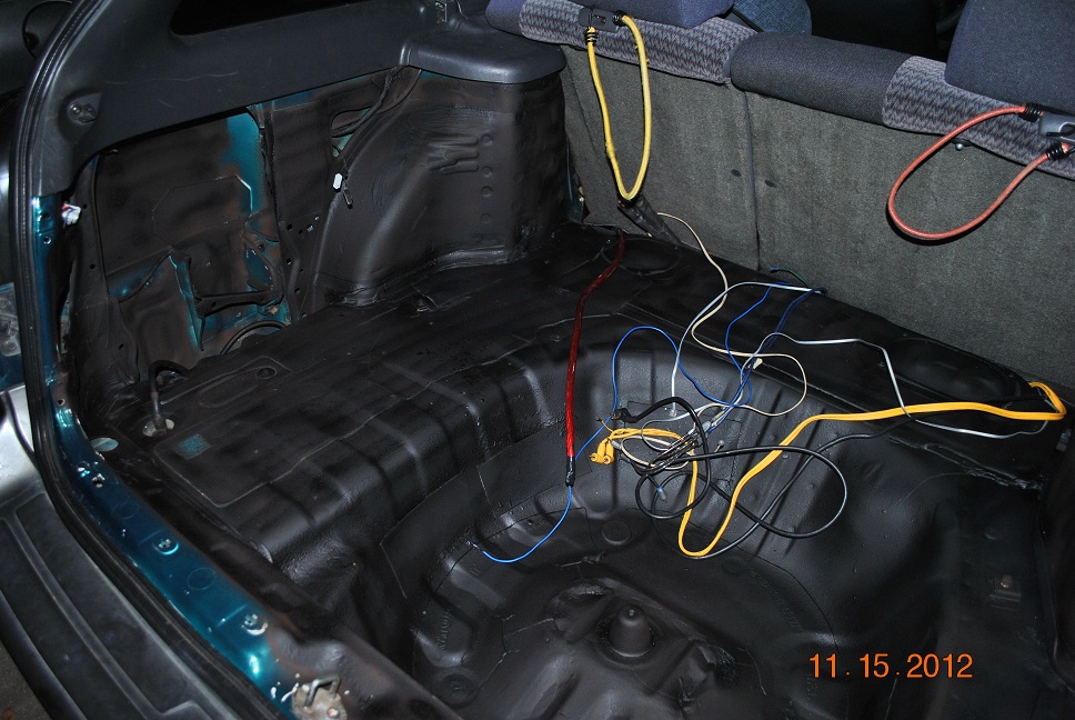 Got my 0g wire today, not bad as far as flexibility for the price (ebay) & got the back rattle canned with some sound deadening spray. I'll start on the side enclosures soon, I'm going to match they're color with the gray trim. :D