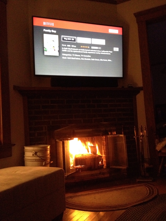 My TV (LG 60LA6200 60" LED 3D TV mounted on Sanus VLF410B1 Super Slim Full-Motion Mount)
