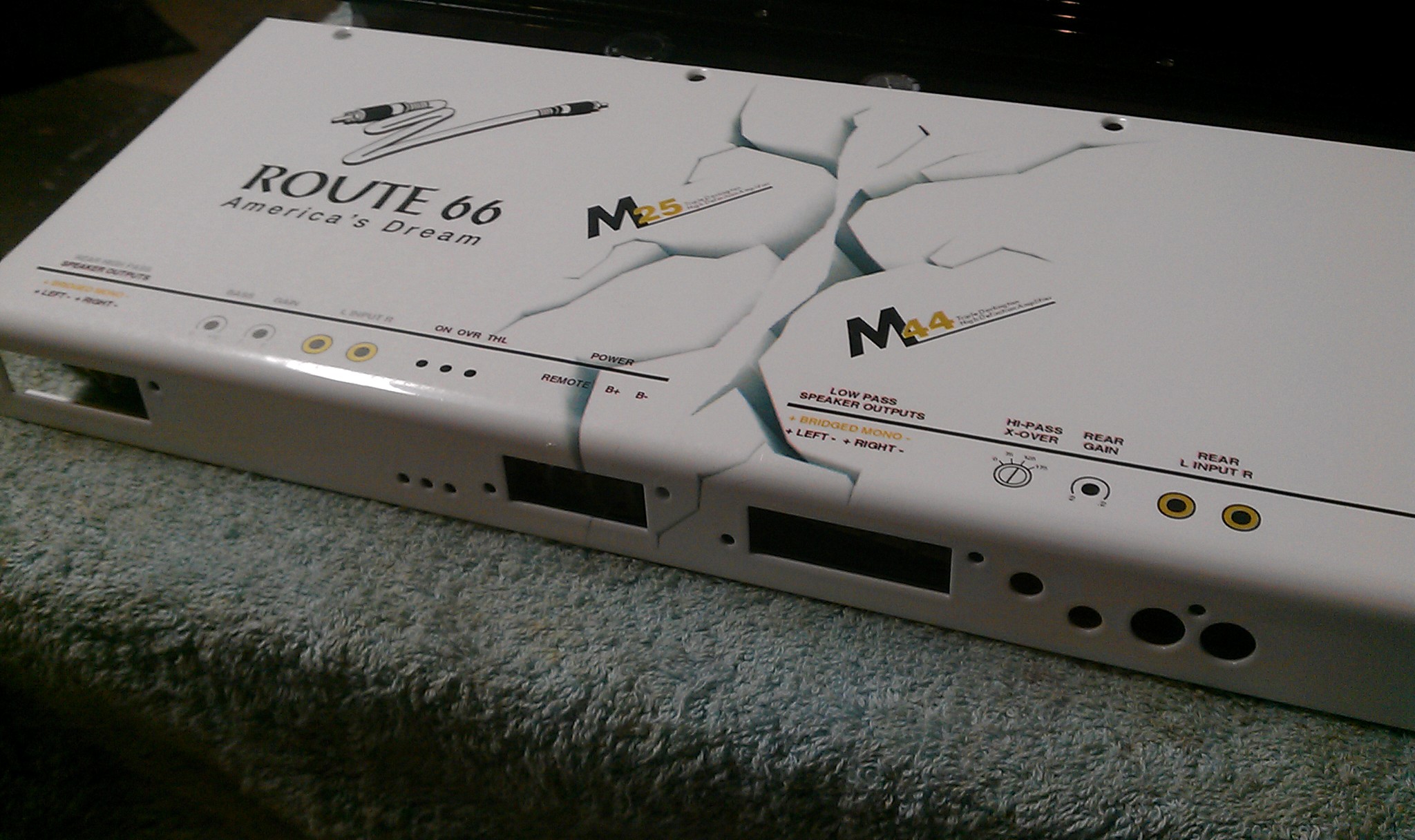 the idea is that OEM artwork and labels off rt66 is in darker print form... any artwork that is on m44 or m25 oem... is on the amp(s), but in a toned down display. similar to/like a silhouette version... so maybe you guys can see that clearly in the pictures (IDK), but just letting you know in case you are not able to pick up on that.