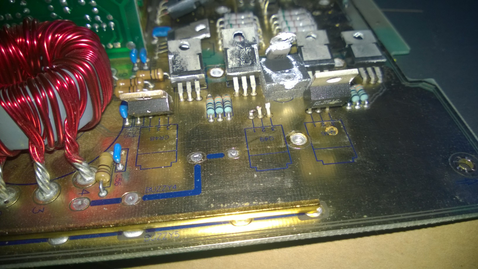 I have now ohm'ed the gate resistors, here is the result. The diode between + and - I don't where is. Is it possible to pinpoint on the photo what to change?? I'm no electronics expert but I will not give up.. All your help is absolutely amazing...Thanks
