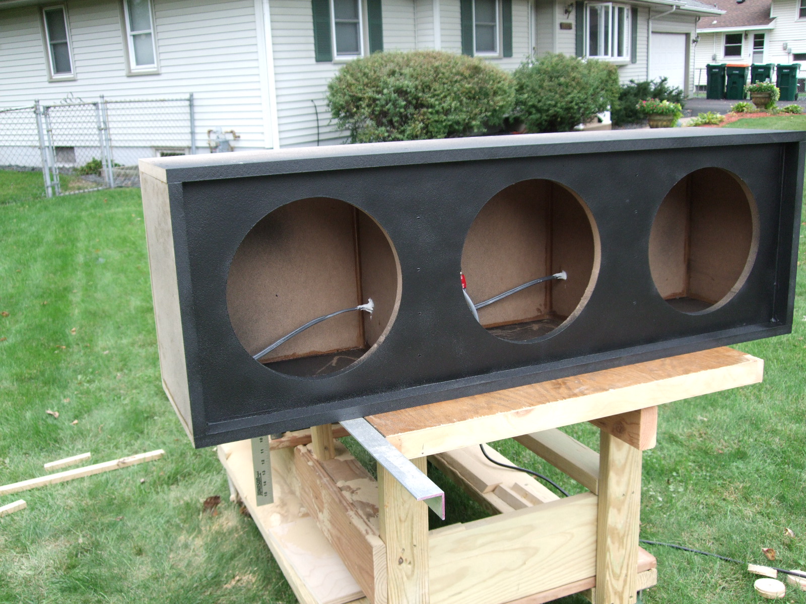 My vehicle is a Yukon XL so I have 49" wide to work with. I was going to build a box that is 49" wide by 14" tall by 13" deep and recess the front baffle in about an inch or so to accommodate a grill panel that would screw into the box. Recessing the front baffle would allow the subs to move without touching the grill. I would use a black wire mesh that is stiff enough to withstand some abuse from stuff in the cargo area. I was planning to probably cut out a 3 ring board to match where the subs are going in the box then carpet that piece and then glue or staple the wire mesh behind that so there appears to be a separate grill for each woofer and so you can see each woofer. Maybe I would do some blue lights along the recessed part of the box to have a nice glow effect coming through the grill. Then screw that whole assembly to the box.