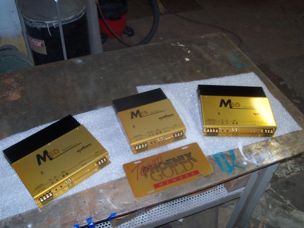 @ RANDY... I CAN DO ANOTHER PLATE FOR YOU SO IT WILL MATCH BETTER- as there were months between i did the plate and amps... so the amount of candy powder or chorme base could be different thus making the plate look lil darker...but we had discussed some other amp to get coated and maybe we do it then to finalize the/this deal as we agreed that you would get lilcense plate ....AND i think i would like to see the same logo used on the plate as on the amps... know what i mean... not team member logo on plate but whatever logo is on the amps ...