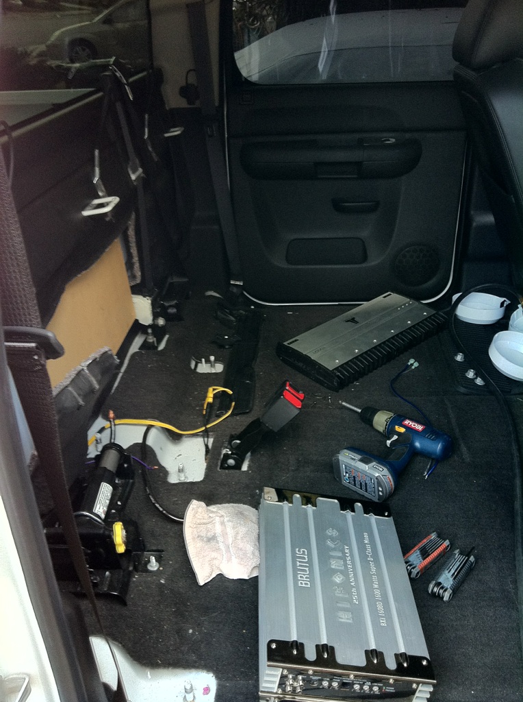 ttocs wrote:I believe the white rings that stick out are for the hooks on the back seat to clip onto. The bottom sticks out a little but there is not much of an angle there. Take the carpet out and see if your amps are not too tall to fit, depend on what he is using but I think you said RF? Then you have plenty of space for subs under the seat. Personally I would fire them down, downfiring boxes are so nice and smooth but you need to leave as much space as you can from the floor. Too close and it will limit output.