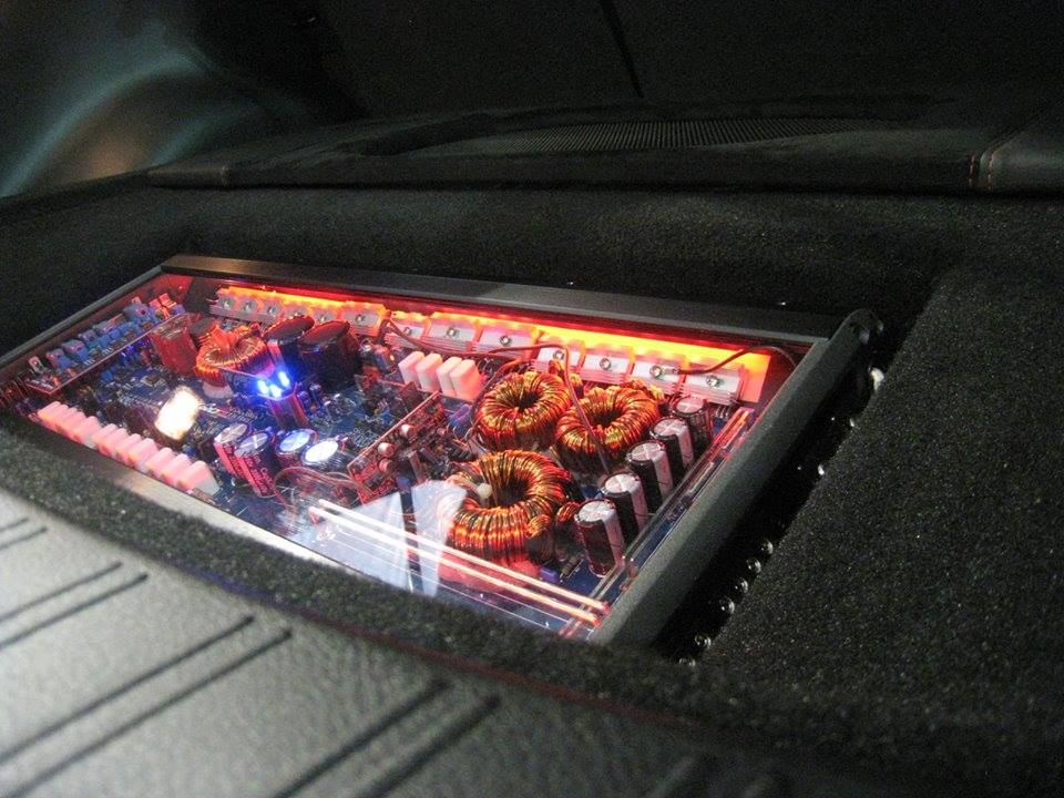 Phoenix Gold is accepting install pictures for their facebook page today, and it looks like someone beat us all to LED's in the Elite amps. This is an Elite.5. I do however think from looking at the pics that they swapped out the smoked plexi for clear. It looks pretty good though.