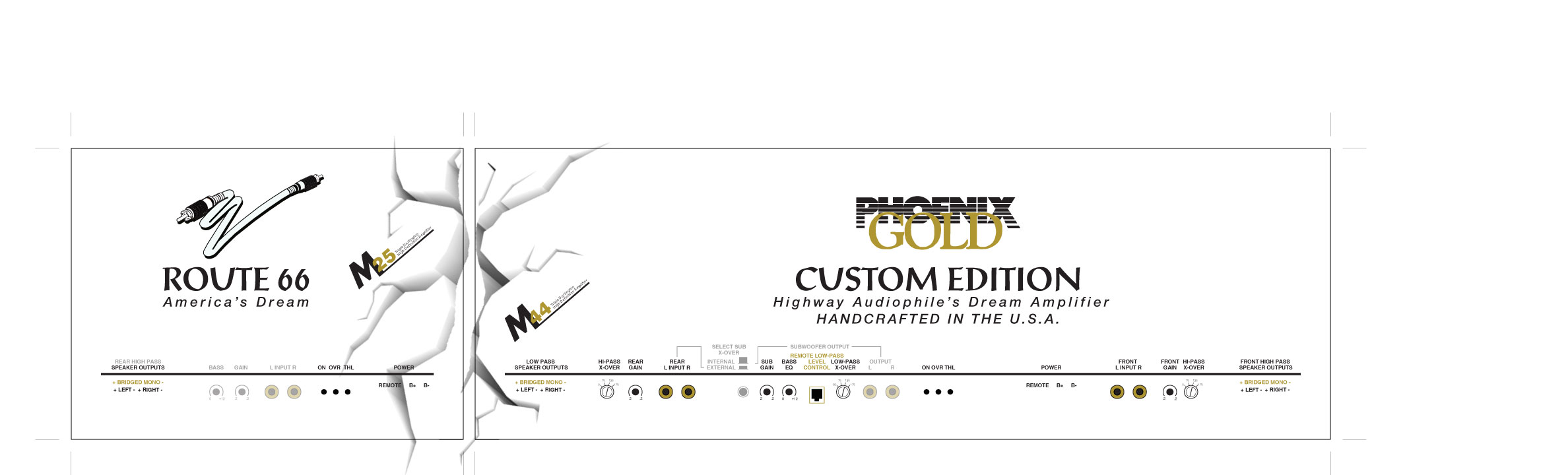 We (owner of amps and myself) are discussing the idea of having some mention or "indication" on the covers that it is an M25 and M44 under the hoods... so like put the OEM m25/m44 graphics in the crack somehow, or on covers in small footprint etc... and whether or not it would be too busy is a concern...but maybe could be done with finesse?