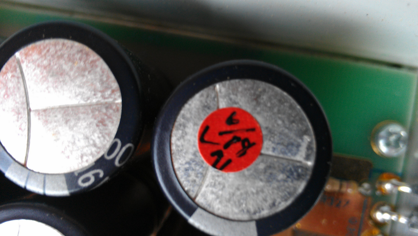 Ok... that makes sense.. my MS2250 blew 2 of the 4 caps on the PS in 1996, i sent it back and they fixed it on warranty. looking at the caps in my amp..all 4 have the same markings. i bet they replaced all of em