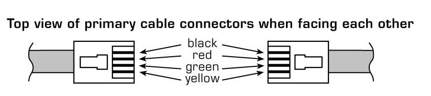 It's just a 4 wire phone cable but the colors need to match up like in the picture.