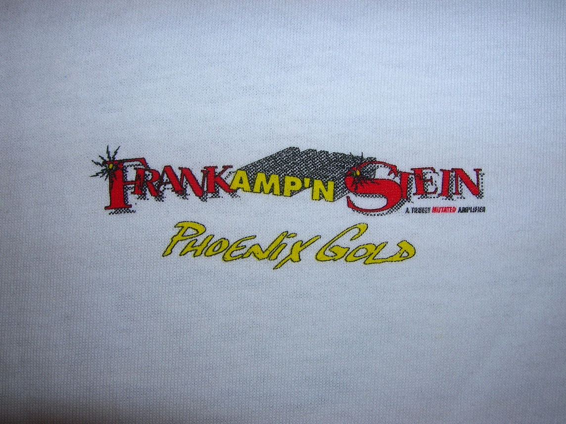 I've got one of the rarest 'gear'. It is the t-shirt given waaayyy back when, when you purchased a Frank amp'n Stein. I had #072. I even still have the 'gold stick on bolts' for the amp too. It was supposed to represent the neck bolts you see on Frankenstein. I could never figure out where they where supposed to go... Too bad I sold the amp to some older fella here in Calgary. I don't think he has ever used the amp...