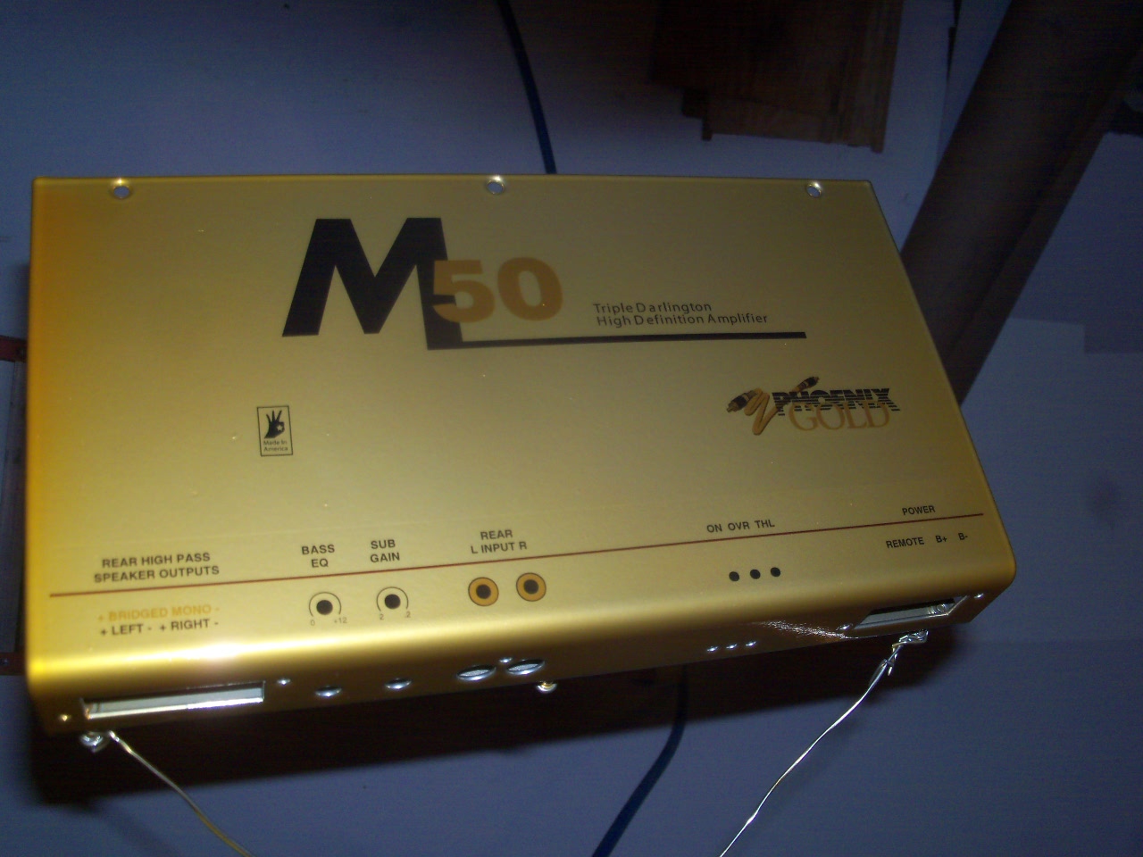 looking at one of the pics...think the last one of the m50... it looks like the front panel has like a white line around bass/gain and rca's area...but (and given not in shop right now) but i wanna say that it truly doesnt exist ... i really dont recall seeing that- but will confirm inna short bit...but truly dont think that is real... think maybe photo is playing tricks with me/us...
