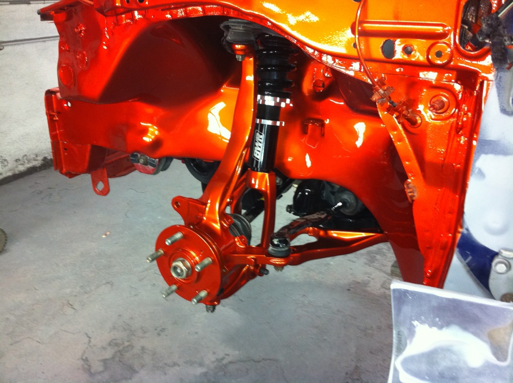 Not exactly audio but wanted to share anyway...the bodyshop just finish shaving and painting the inner fender + the suspension and brakes...next the car!!!