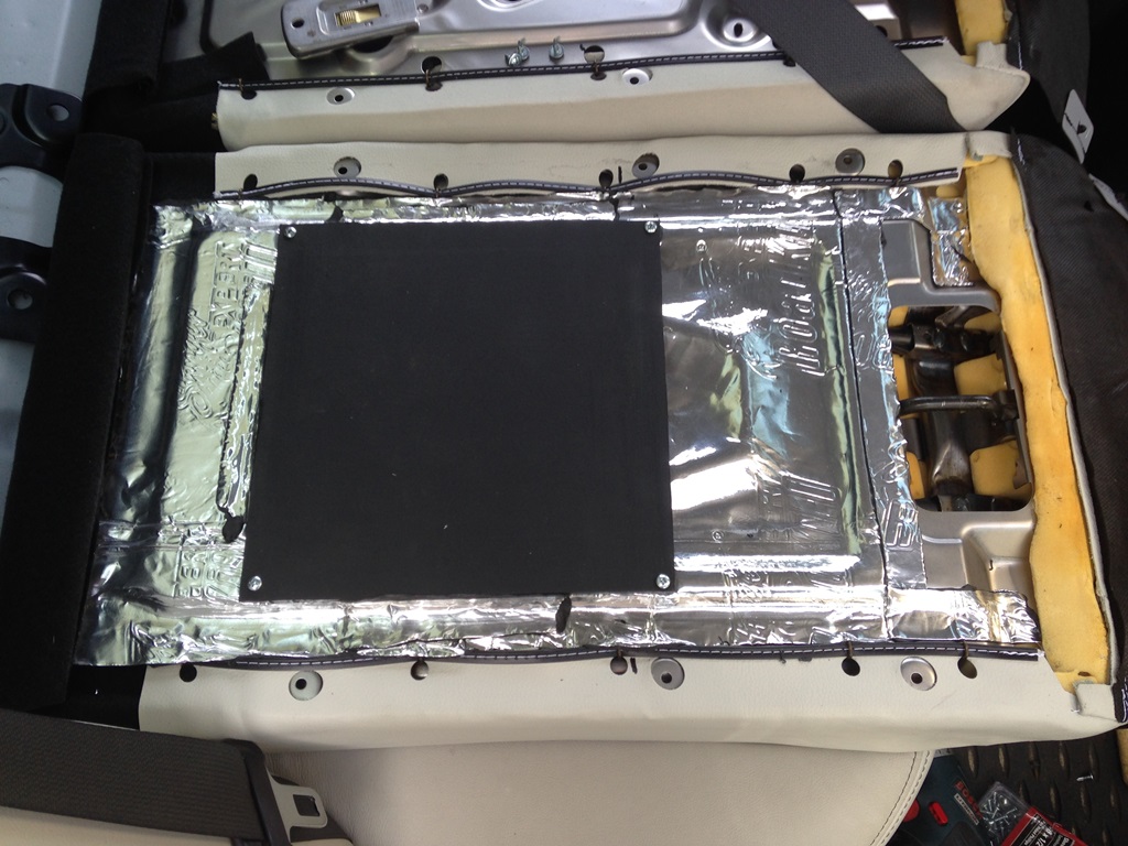 i wanted to save as much space as passable, so i mounted them on the back of the seats. i ran a layer of roadkill across the back of the seats and 1/4 abs to mount the devices to