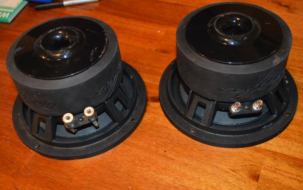 Digging this one up from the dead. Pair of XMAX 8's, V1 I assume? I was wondering if the T/S specs and the box sizes given for the XMAX8 V2 on the FTP here are accurate for this sub also? I was also wondering, anyone know for sure which post is +, and which one is - ? 9 volt battery trick best? Also trying to source out a pair of the missing screw on binding posts, these ones seem to be larger than most standard ones I have seen around here. Thanks.