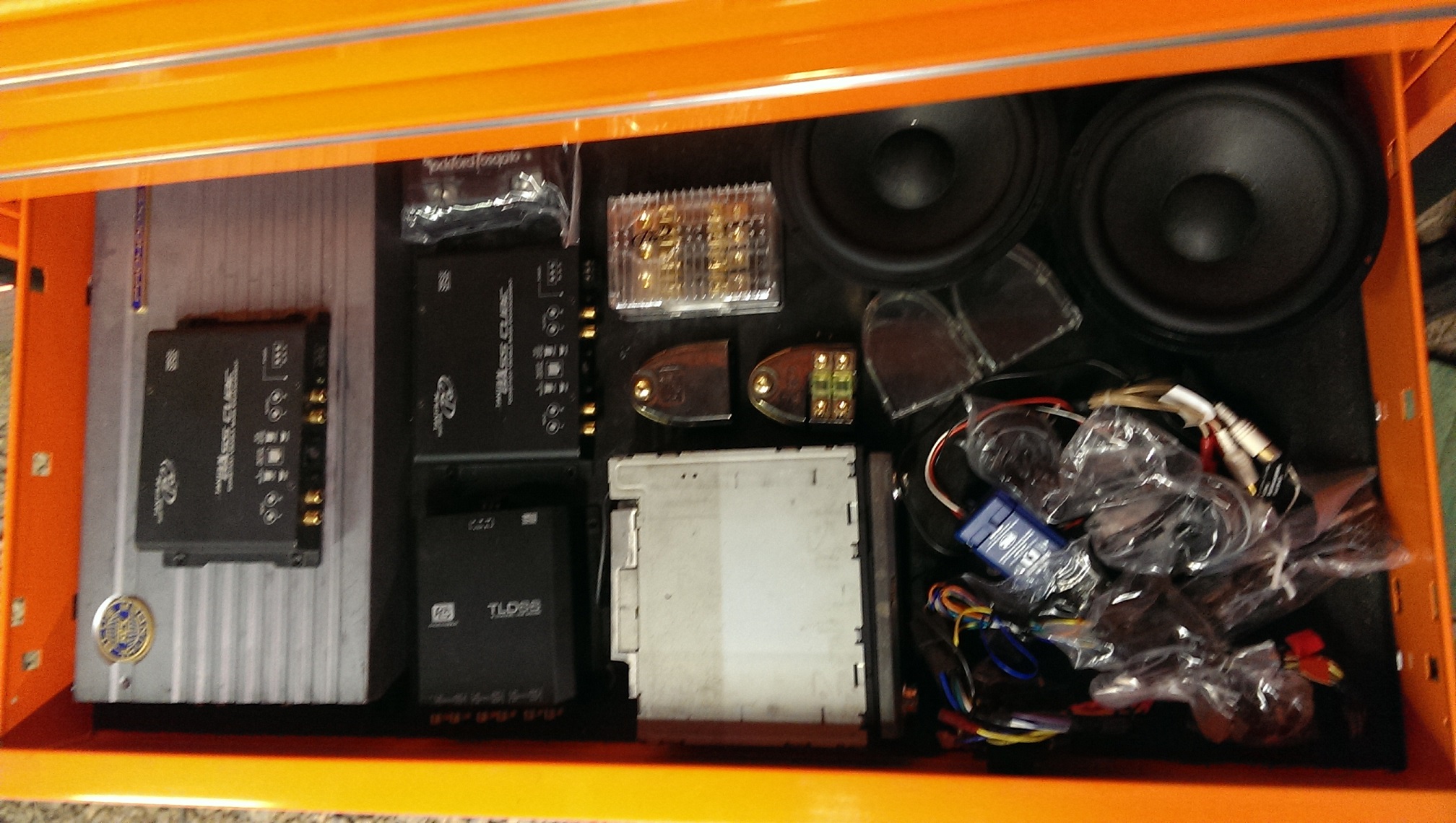 Updated stash picture...I didn't feel like getting out the 12" Xmax, so it's all of my pg gear minus the sub.