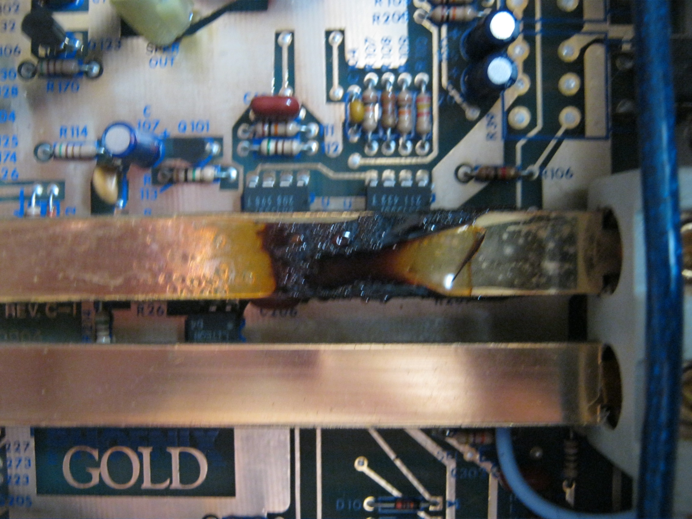 Lastly, what do you think caused the amp to blow considering the damage? Why did the ground bar over heat? Should I remove the ground bar, clean off the melted coating, and then clear coat it? Or should I just leave it?