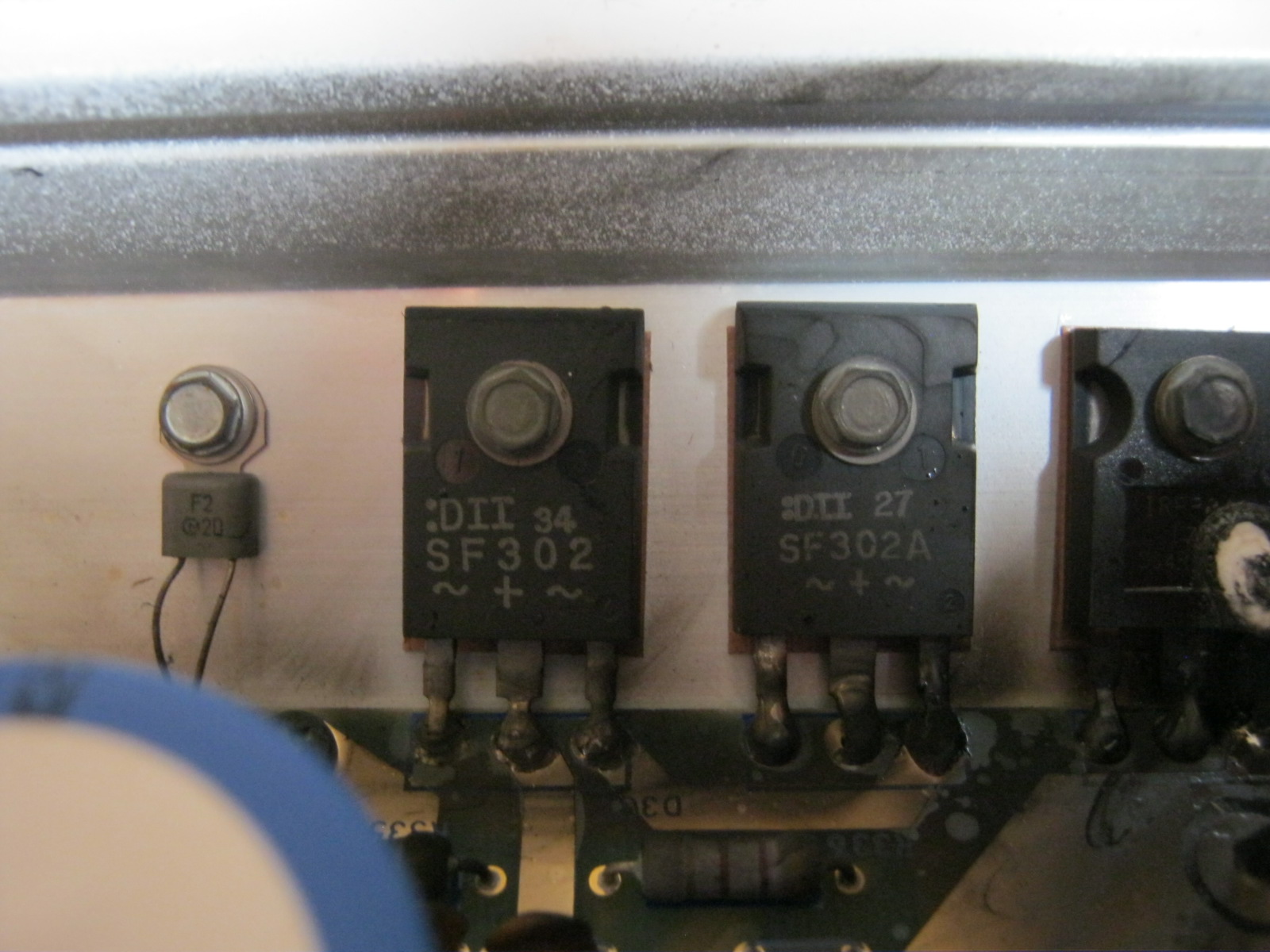 Just looking at old posts. In the picture on the burnt side. The SPF 302a and SPF 302 diodes both have the same + symbol on the front. One should be + and the other should be -... kind of weird??? Was this amp repaired before?