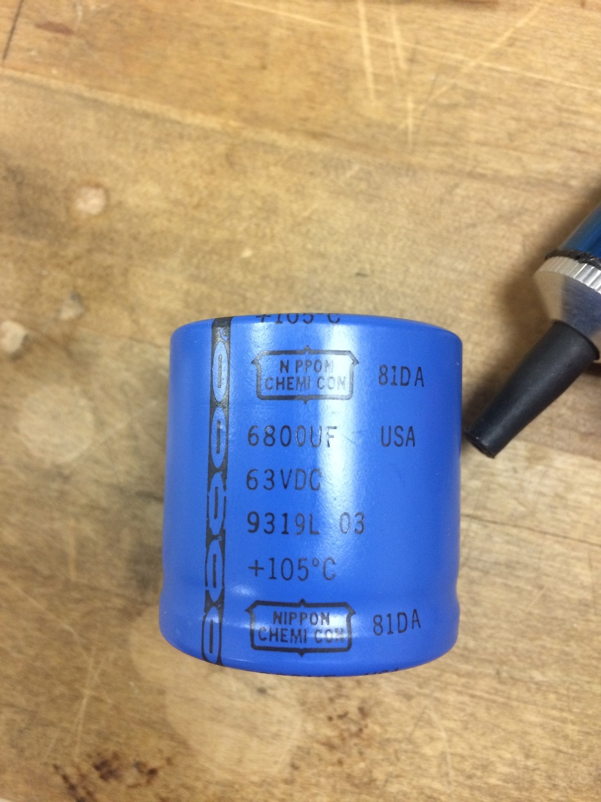 What's the rail voltage of the MAC-500? --> Should I stick with 63V+, 6800uF+ capacitors?