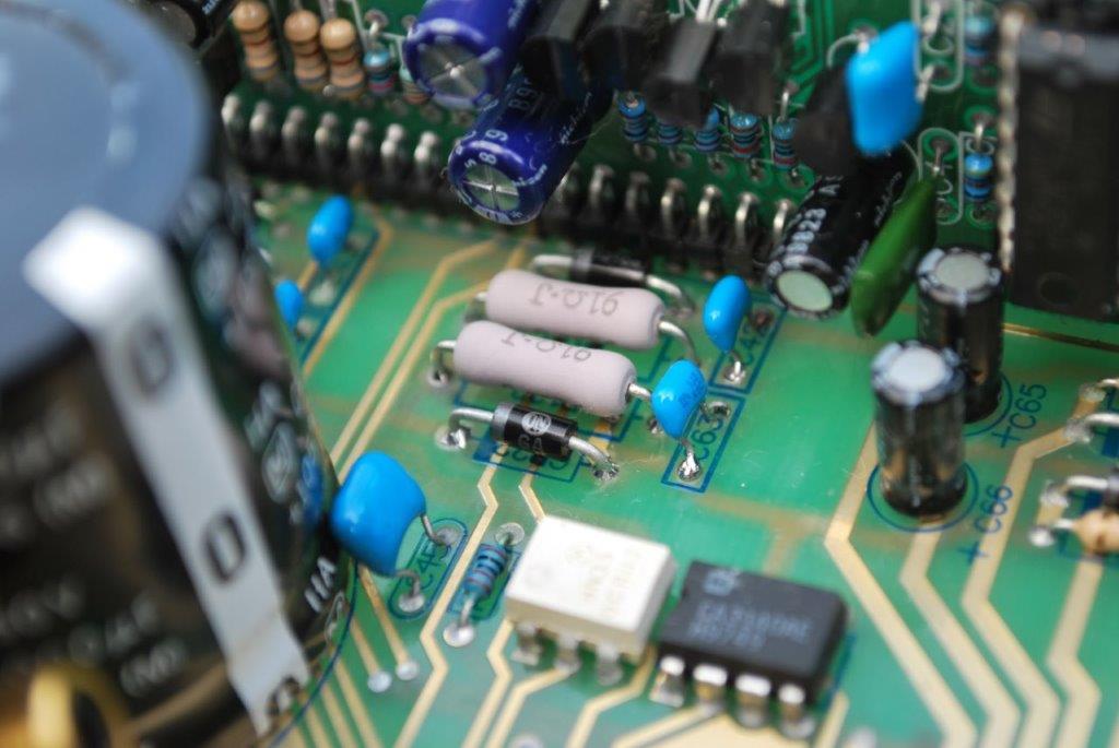 when I power up and measure the rail caps I have 0 volts (13.6v on the PSU caps). So I decided to take out the 8 PS FET's. They are type P55N06 with 33 ohm gate resistors. I tested the switch function of the FET's once they where out and they al seem to work (tested with multi meter) The gate resistors measure all 33 ohm so no open resistors.