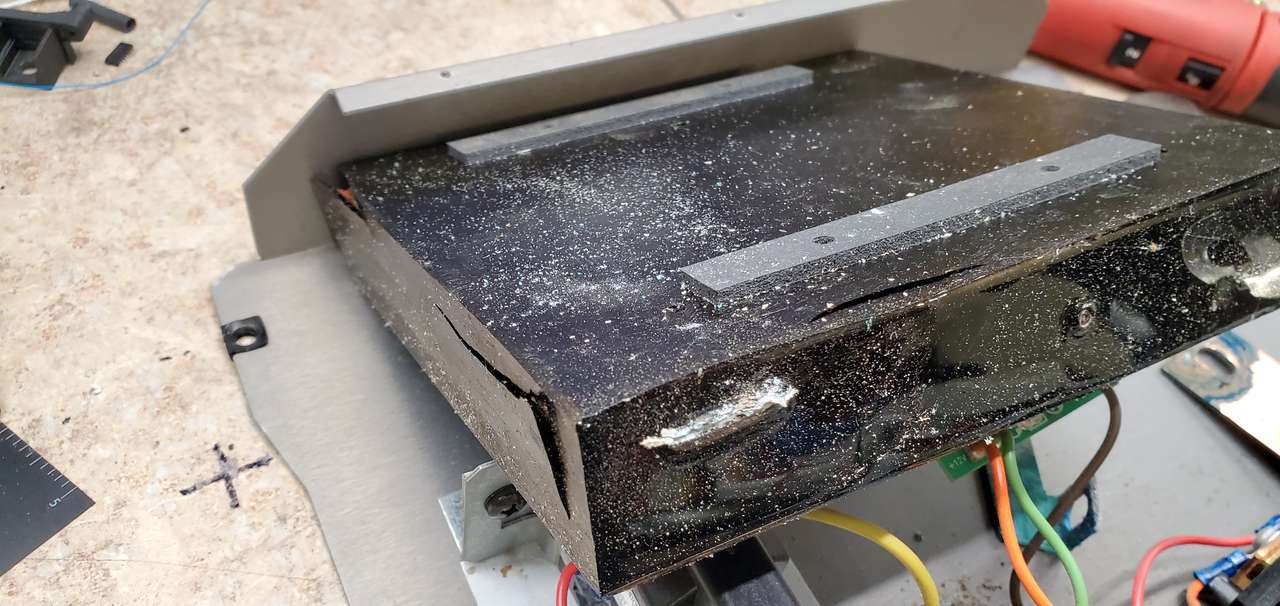 I made a bit more progress on these over the last few days. I had a feedback from a few people that they did not like the unobstructed view of the yellow supercaps. I designed a 3d printer bracket that allowed me to reinstall the original grate baffle above the caps. This also has to be filled and tapped and the main case had to be modified as well.