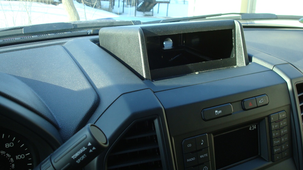 I've finished fabricating my housing for the Pioneer P99. It will be located above the existing stereo, in place of a tray centered on top of the dash. It's a tad unorthodox, but I needed a location that is accessible and there are currently no dash kits available for my vehicle. I have not modified the vehicle in any way that can't be returned to 100% stock, just in case I decide to go a different route in the future.